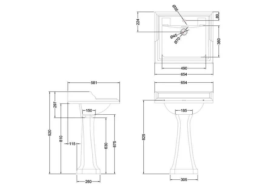 Burlington Раковина подвесная 65,4х58,1 см с переливом, 2 отвер. под смеситель, цвет: белый глянец B15 2TH