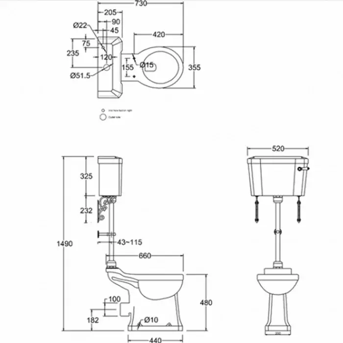 Burlington Regal Бачок с кнопкой и сливным механизмом, цвет: белый/хром глянцевый C2