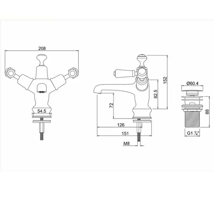 Burlington Regent Смеситель для раковины на 1 отверстие, излив 2,2h см, цвет: хром/белый глянцевый T12-QT