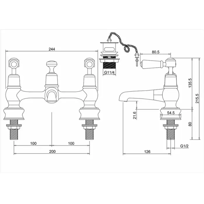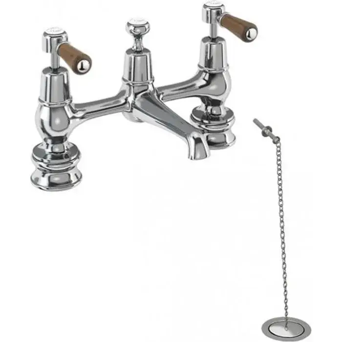 Burlington Regent Смеситель для раковины на 2 отв, излив 2,2h см, с пробкой, цвет: хром/орех глянец KER10-QT WAL