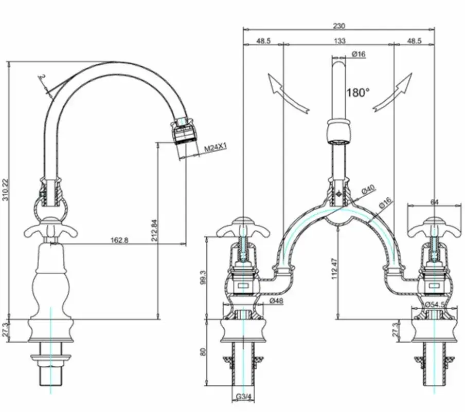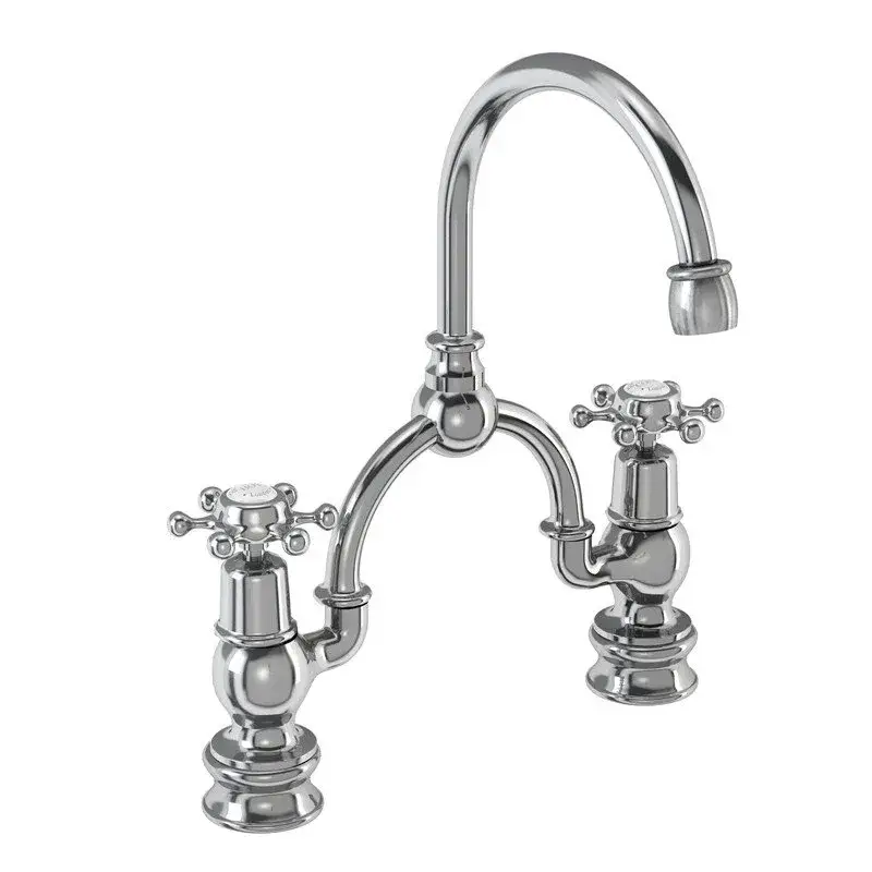 Burlington Regent Смеситель для раковины на 2 отверстия, излив 21h см, цвет: хром/белый глянец BIR28-QT