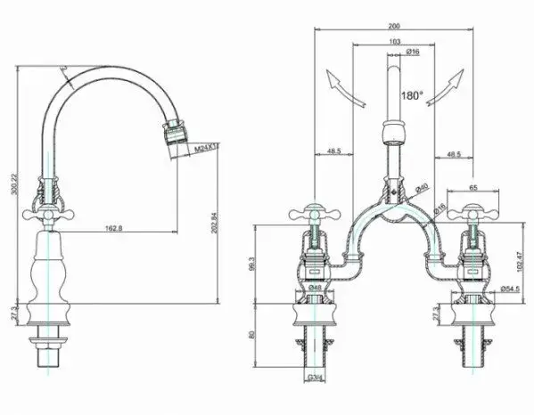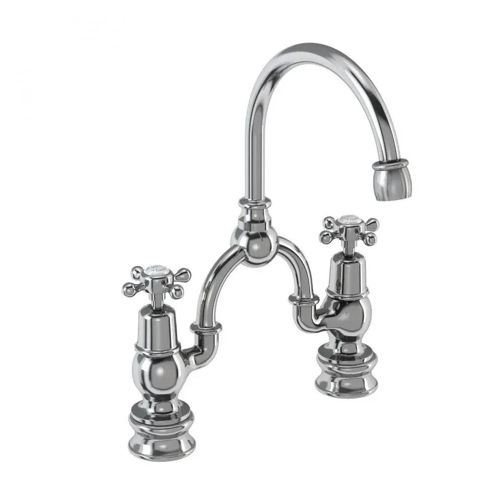 Burlington Regent Смеситель для раковины на 2 отверстия, излив 20h см, цвет: хром/белый глянец CLR27-QT
