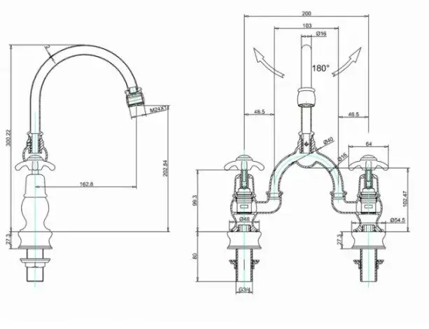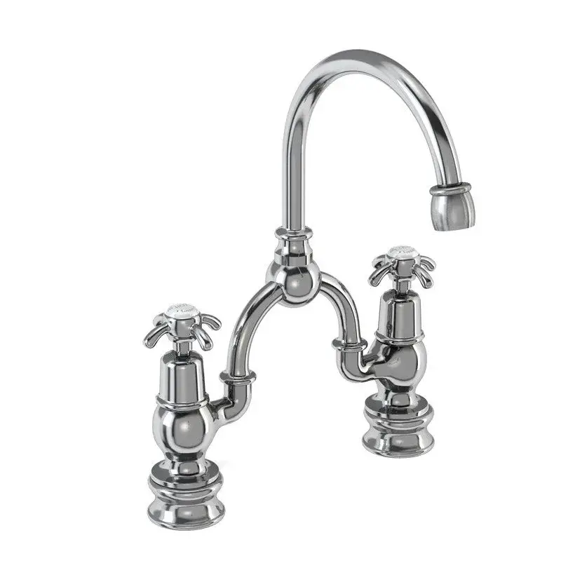 Burlington Regent Смеситель для раковины на 2 отверстия, излив 20h см, цвет: хром/белый глянец ANR27-QT