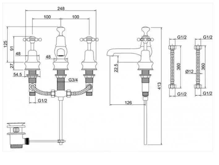 Burlington Regent Смеситель для раковины на 3 отверстия, излив 2,2h см, цвет: хром/белый глянцевый BIR12-QT