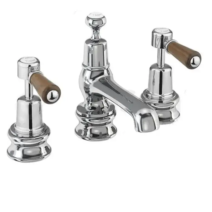 Burlington Regent Смеситель для раковины на 3 отверстия, излив 2,2h см, цвет: хром/орех глянец KER12-QT WAL