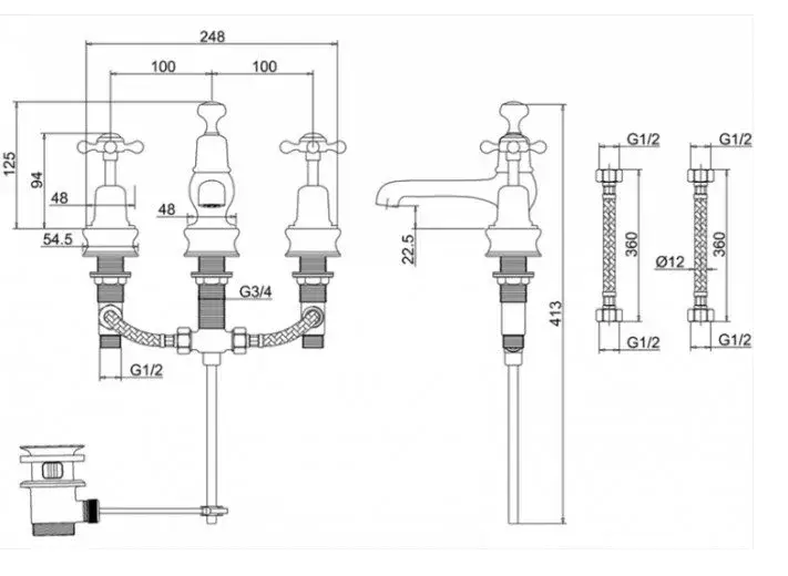 Burlington Regent Смеситель для раковины на 3 отверстия, излив 2,2h см, цвет: хром/белый глянцевый CLR12-QT