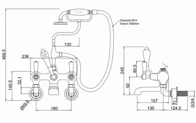 Burlington Regent Смеситель для ванны с ручным душем и держателем, цвет: хром/белый глянец KER17-QT