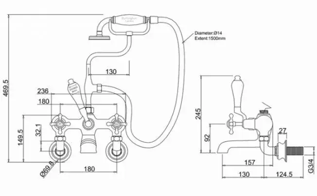 Burlington Regent Смеситель для ванны с ручным душем, ручки Claremont, цвет: хром/белый глянец CLR17-QT