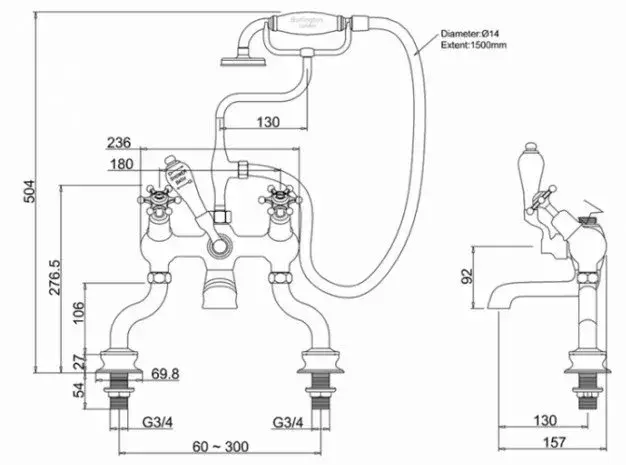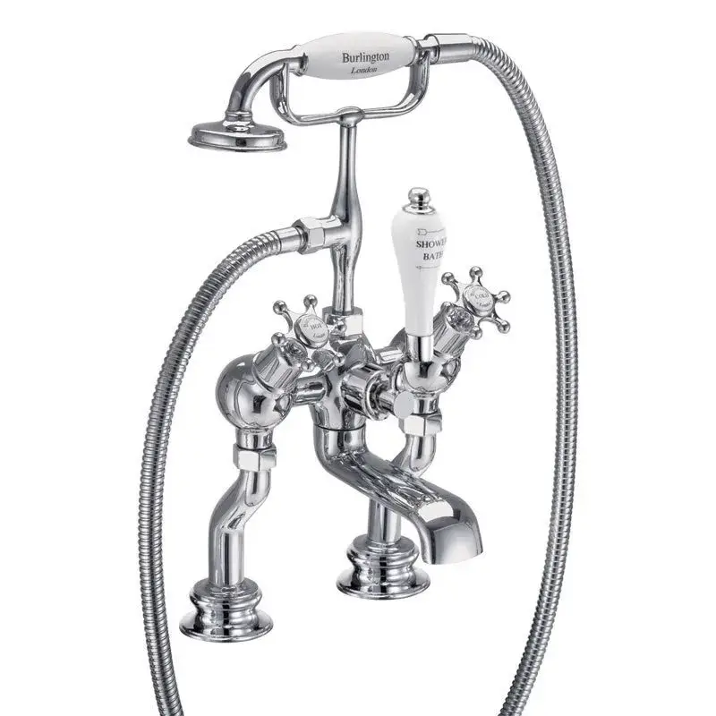 Burlington Regent Смеситель на борт ванны с изливом 13 см и ручным душем, цвет: хром/белый глянец BIR15-QT