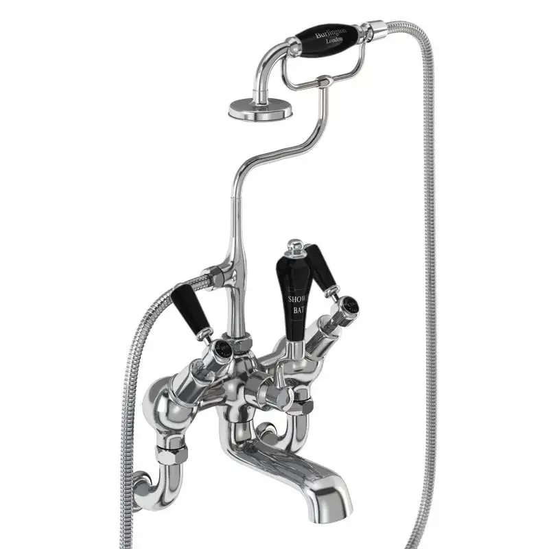 Burlington Regent Смеситель на борт ванны с изливом 13 см и ручным душем, цвет: хром/черный глянец ANR15-QT BLA