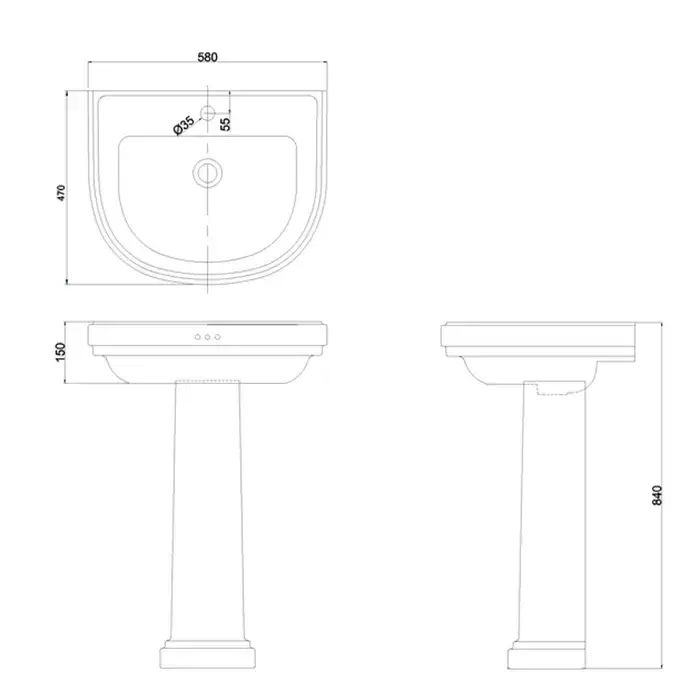 Burlington Riviera Раковина подвесная 57х47 см с переливом, 3 отв. под смеситель, цвет: белый глянец RIV3 3TH