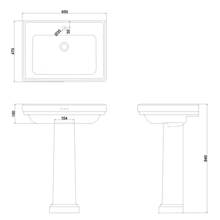 Burlington Riviera Раковина подвесная 65х47 см с переливом, 3 отв. под смеситель, цвет: белый глянец RIV4 3TH