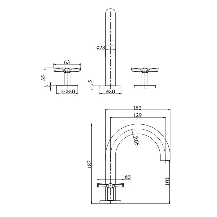 Burlington Riviera Смеситель для раковины на 3 отверстия, излив 4,5h см, цвет: хром глянцевый RIV6 CHR