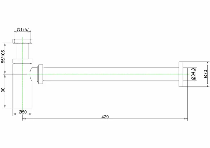 Burlington Сифон для раковины латунный, с плоским дном, цвет: хром глянцевый W13
