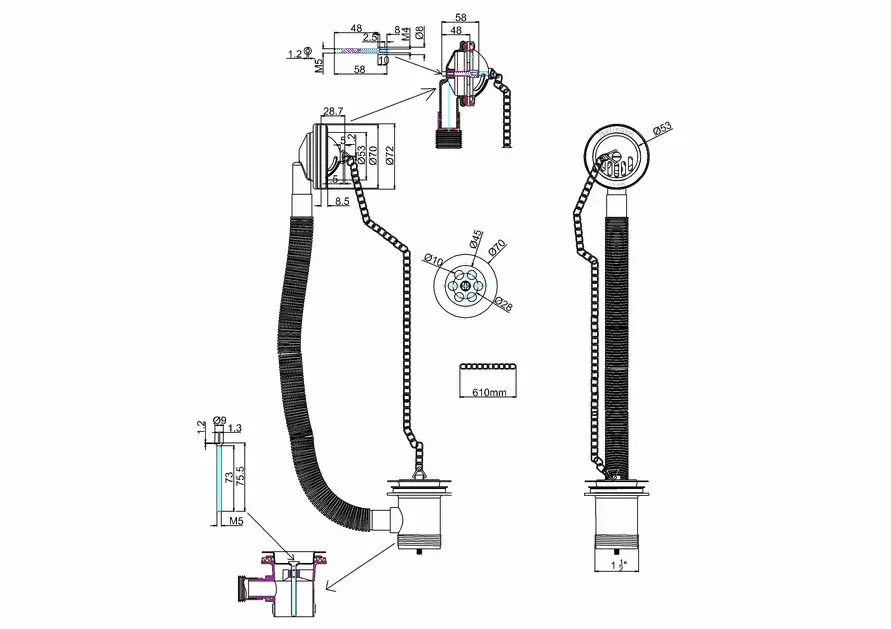 Burlington Слив-перелив для ванны с гибкой подводкой, цвет: шлифованный никель W3 BNKL