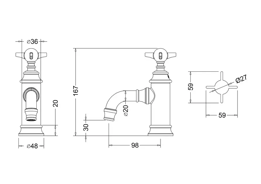 Burlington Смеситель для раковины на 1 отверстие, без д/к, излив 3h см, цвет: никель глянцевый ARC35
