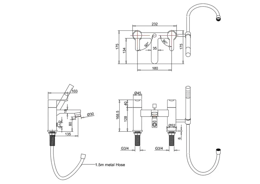 Burlington Смеситель на борт ванны с изливом 13,5 см и ручным душем, цвет: хром глянцевый CTA7