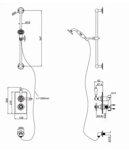 Burlington Trent Душевой комплект встра. с внутренней частью: ручной душ и штанга, цвет: хром глянец TF1H