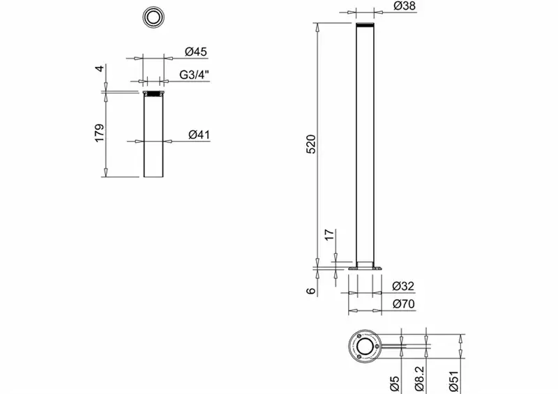 Burlington Трубы подвода воды 7х52h см, цвет: золото глянцевое W6 GOL