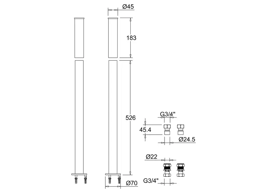 Burlington Трубы подвода воды 7х71h см, цвет: хром глянцевый W6/ARCW6 CHR