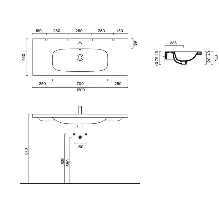 Catalano Alvea Раковина 120х46см., подвесная или на мебель, без отв., цвет: белый глянцевый