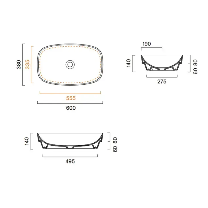 Catalano Alvea Раковина 60х38см., настольная или полувстраиваемая, цвет: белый глянцевый