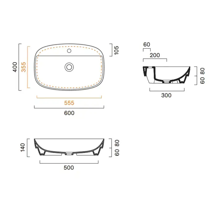 Catalano Alvea Раковина 60х40см., настольная или полувстраиваемая, с 1 отв., цвет: белый глянцевый