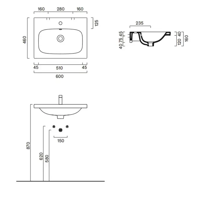Catalano Alvea Раковина 60x46см., подвесная или на мебель, без отв., цвет: белый глянцевый