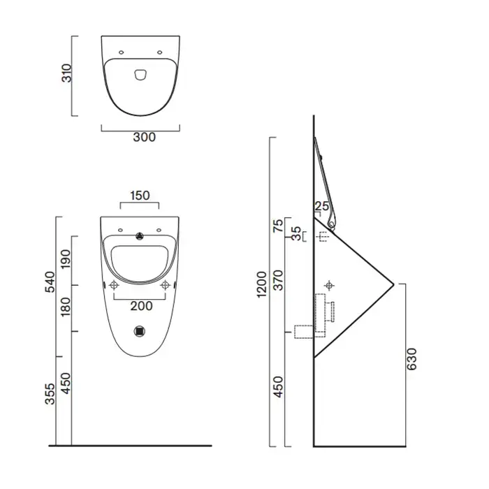 Catalano Comfort Писсуар 54x30см., с отв. для крышки, цвет: белый глянцевый