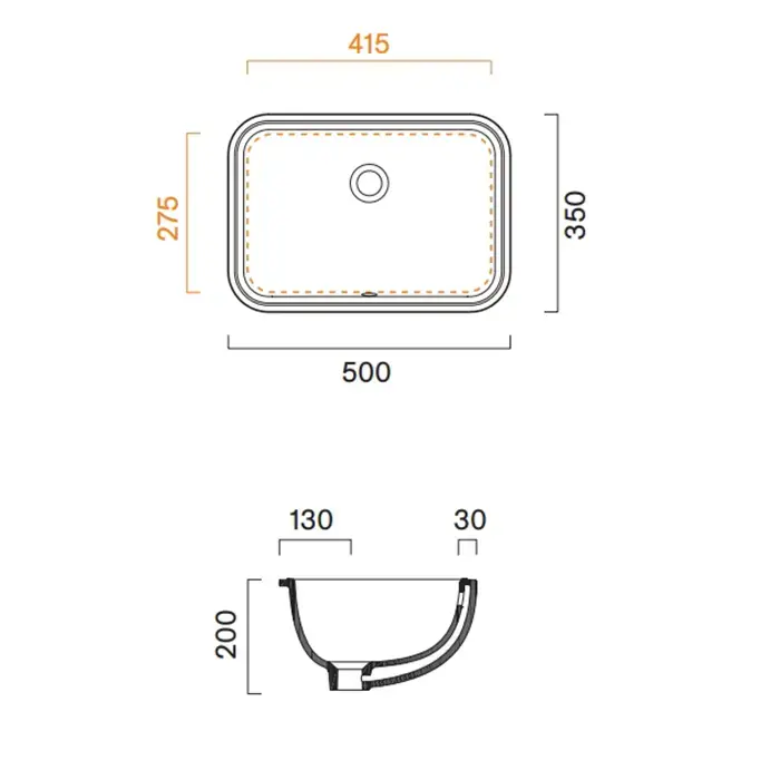 Catalano Italy Раковина 50х35см., встраиваемая под столешницу с переливом без крепежа, цвет: белый глянцевый