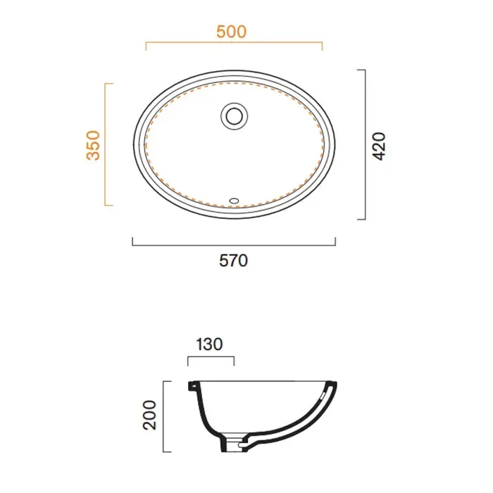 Catalano Italy Раковина 50х35см., встраиваемая под столешницу с переливом без крепежа, цвет: белый глянцевый