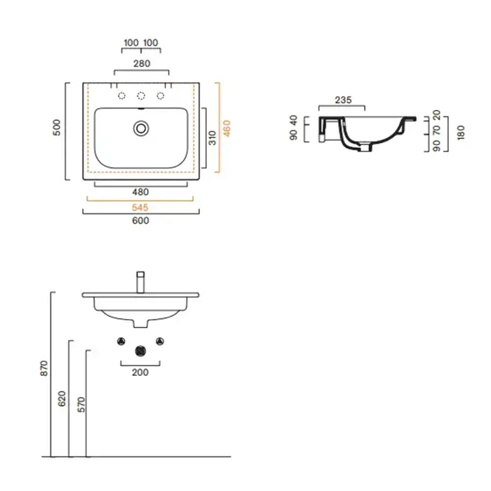 Catalano Italy Раковина 50х35см., встраиваемая под столешницу с переливом без крепежа, цвет: белый глянцевый