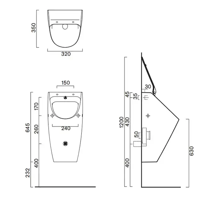 Catalano Писсуар 64x32см Rimless, без отв. под крышку, цвет: черный матовый