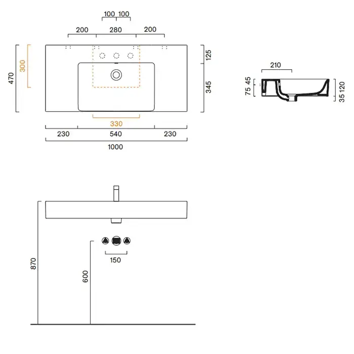 Catalano Premium Раковина 100x47см чаша в центре, без отв., цвет: белый глянцевый