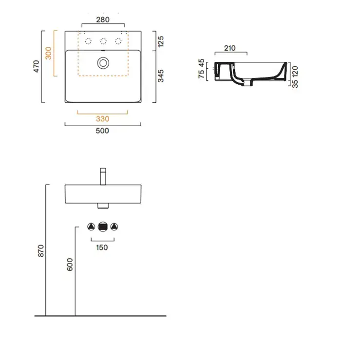 Catalano Premium Раковина 50х47см., подвесная, без отв., цвет: белый глянцевый