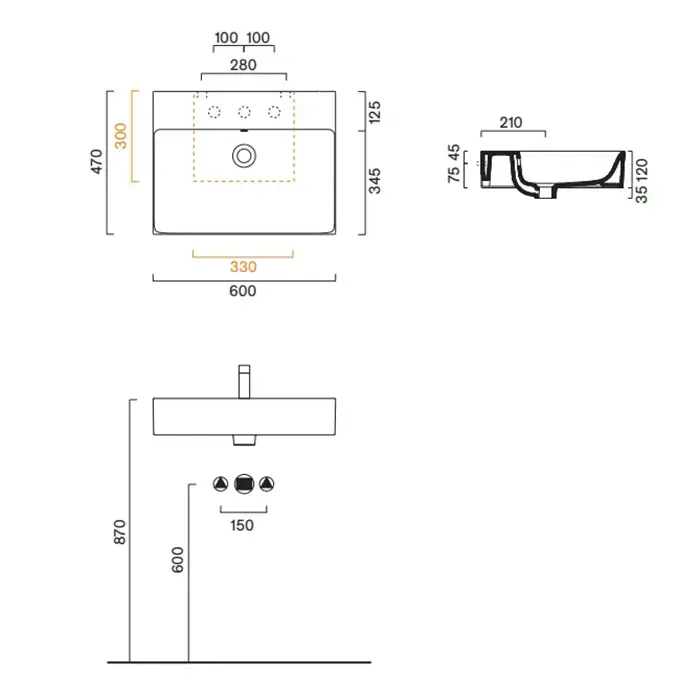 Catalano Premium Раковина 60х47см, подвесная, без отв., цвет: белый глянцевый