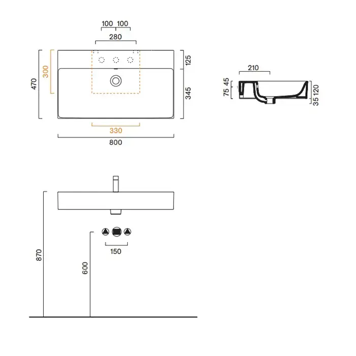 Catalano Premium Раковина 80х47см, подвесная, без отв., цвет: белый глянцевый