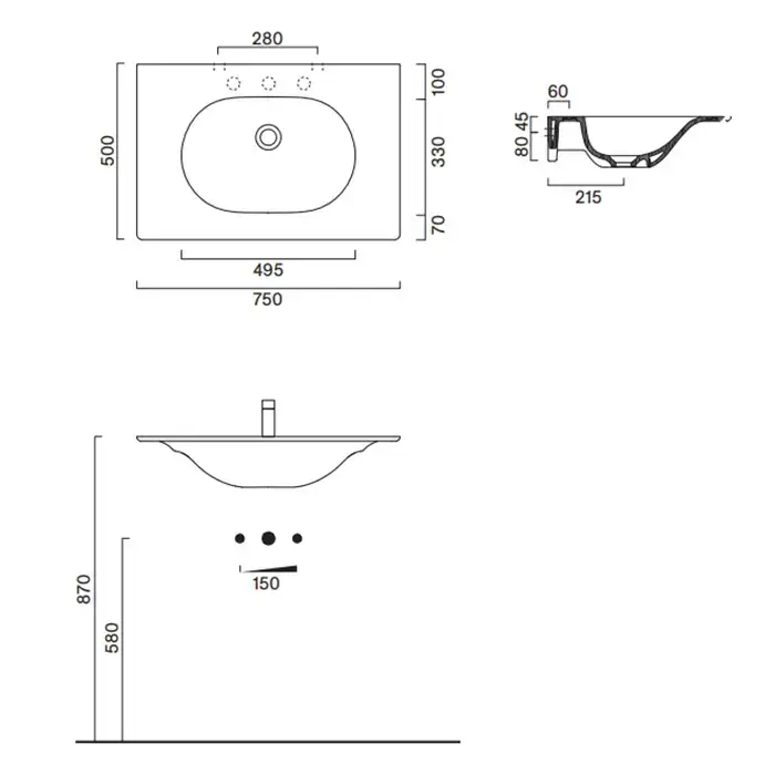 Catalano Sfera 75 Столешница с интегрированной раковиной, цвет: белый глянцевый