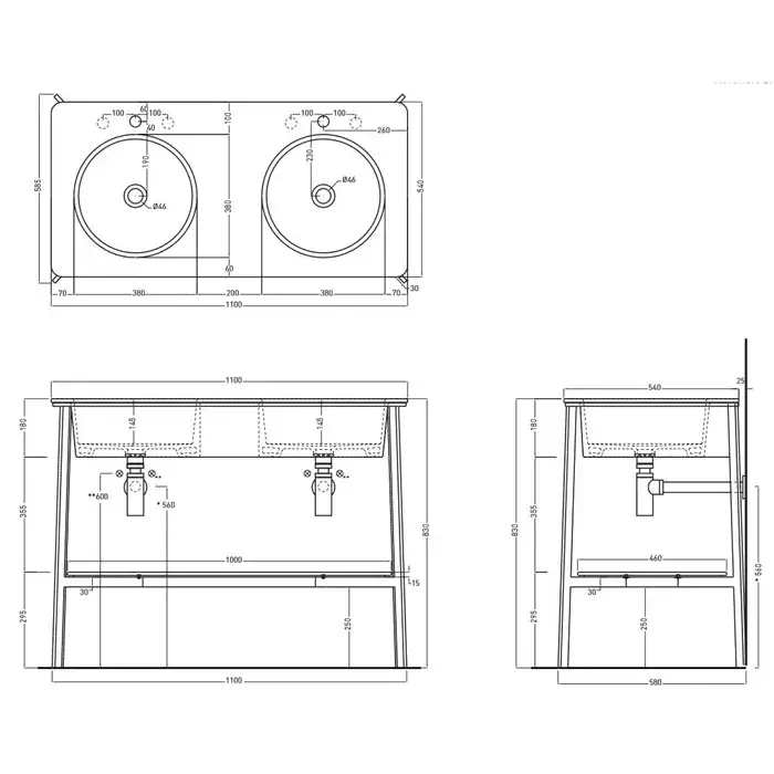 Cielo Catino Doppio Раковина двойная 110х54хh18 см, по 1 отв., цвет: глянцевый белый CALAD