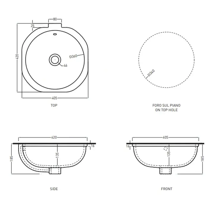 Cielo Enjoy Раковина встраиваемая 42х40,5хh18,5 см, круглая, цвет: серый EJLASPTBR