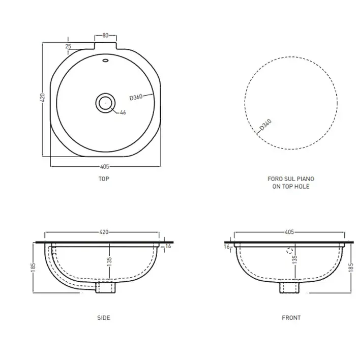 Cielo Enjoy Раковина встраиваемая 42х40,5хh18,5 см, круглая, цвет: серый EJLASPTBR