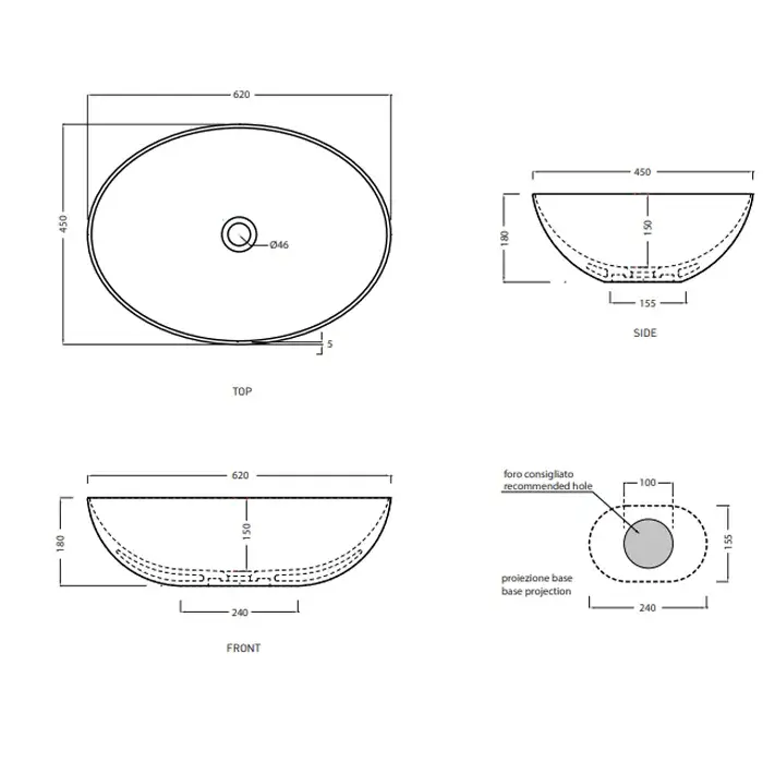 Cielo Era-Eco Раковина накладная 62x45xh18 см, овальная, цвет: basalto BAECOBA