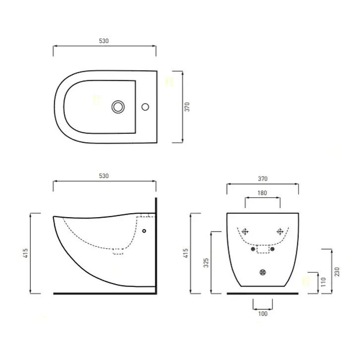 Cielo Fluid Биде подвесное 37х53хh37 см, 1 отв., с кремплениями, цвет: глянцевый белый FLBS