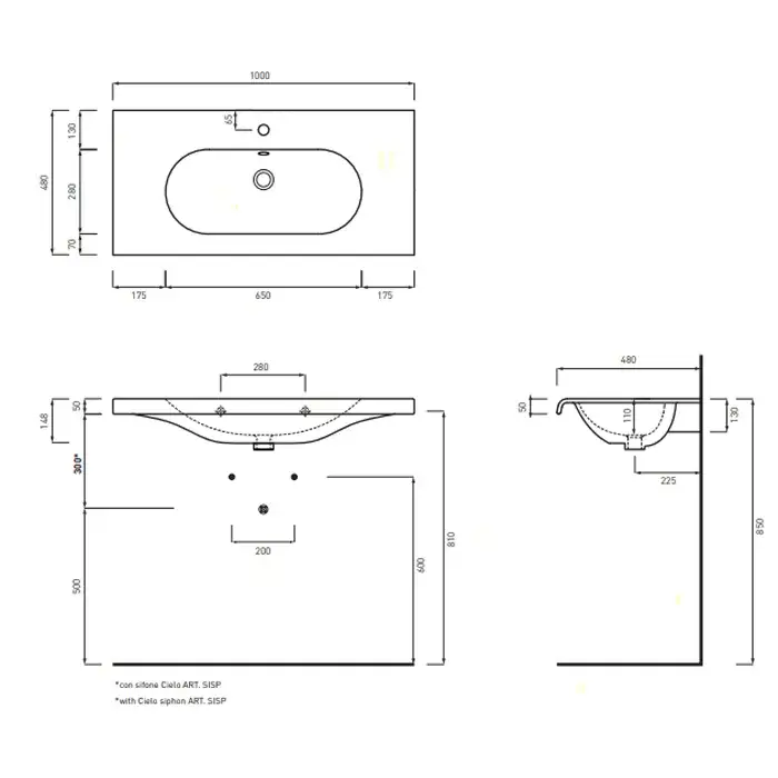 Cielo Fluid Раковина подвесная 100х48хh15 см, цвет: глянцевый белый FLLS100