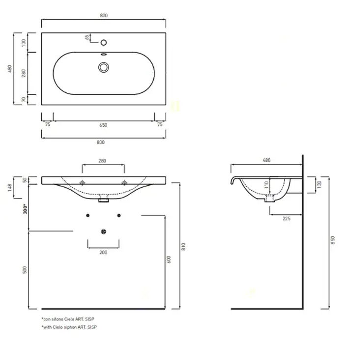 Cielo Fluid Раковина подвесная 80х48хh15 см, цвет: глянцевый белый FLLS80