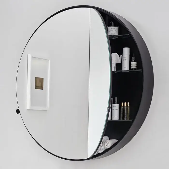 Cielo I Catini Круглое зеркало с пеналом, диаметр 90 см, цвет: Matt Black CASPCTNM