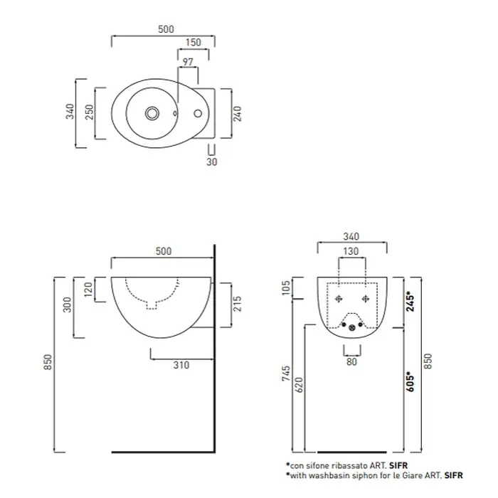 Cielo Le Giare Раковина подвесная 34х50хh30 см, цвет: глянцевый белый LGLS