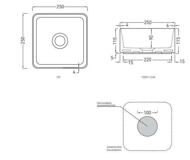 Cielo Shui Comfort Раковина накладная 25х25хh11,5 см, квадратная, цвет: глянцевый белый MILAQ