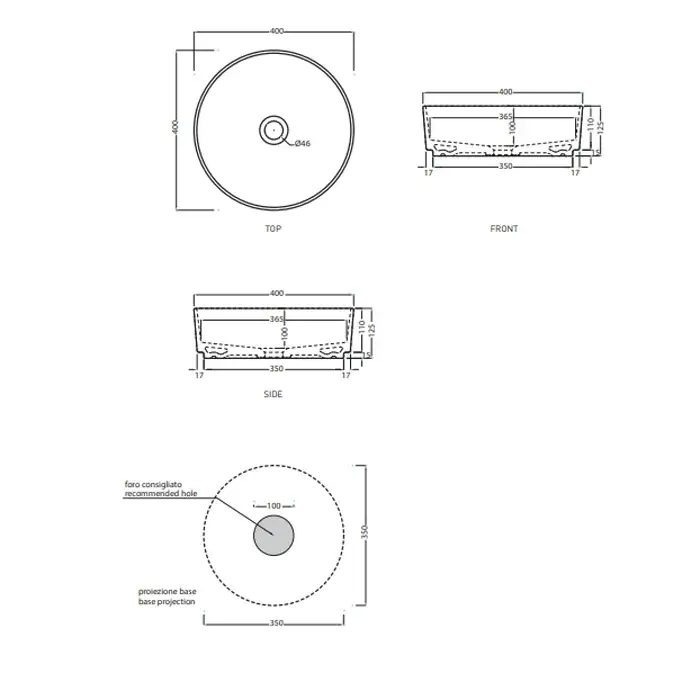 Cielo Shui Comfort Раковина накладная 45xh13 см, 1 отв, круглая, цвет: белый глянец SHCOLATF