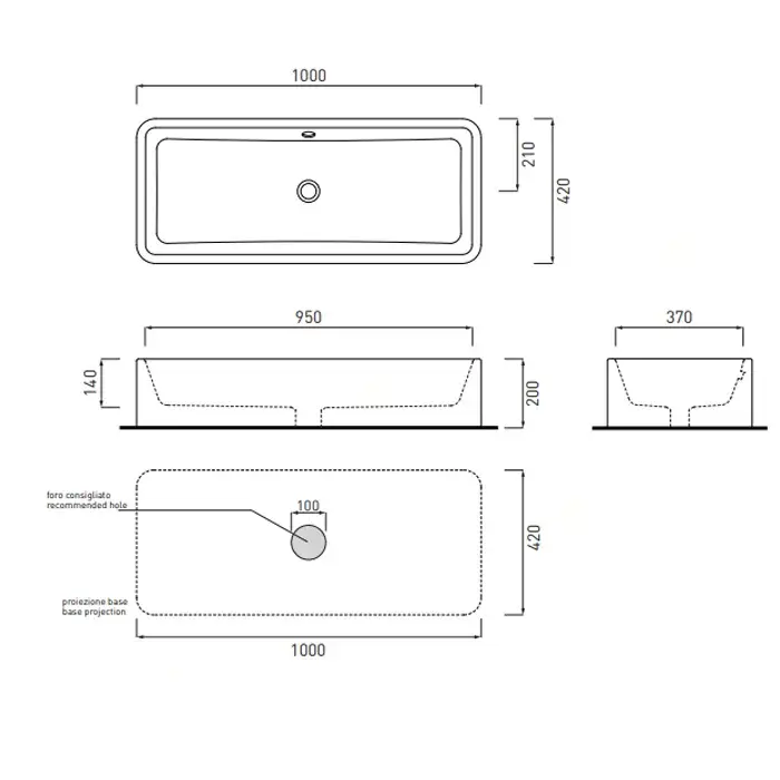 Cielo Shui Раковина 100х42хh20 см, накладная, с переливом, цвет: глянцевый белый SHLAA10020
